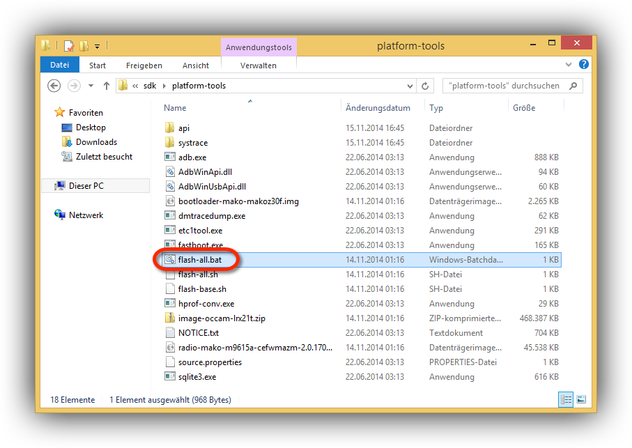 Jetzt kann das neue Image installiert werden. Dafür musst Du doppelt auf die Datei „flash-all.bat“ klicken:
