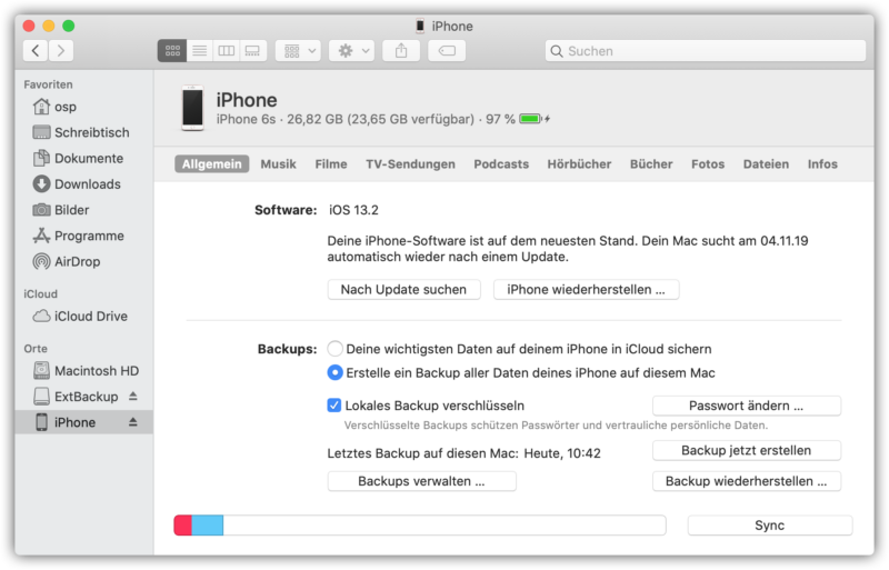 macOS Catalina – iOS-Backups auf externer Festplatte sichern
