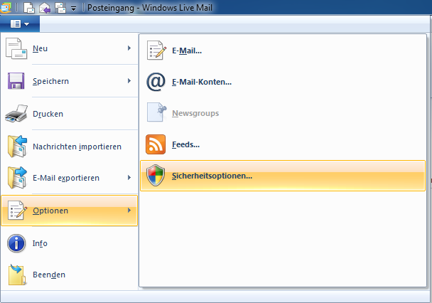 Öffnen Sie nun „Optionen“ -> „Sicherheitsoptionen…“: