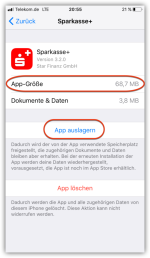„Ausgelagerte“ Apps erkennst Du an der iCloud-Wolke in der Bezeichnung der App: