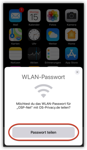 … wird das Kennwort übermittelt und Dein Gast wird mit Deinem WLAN verbunden: