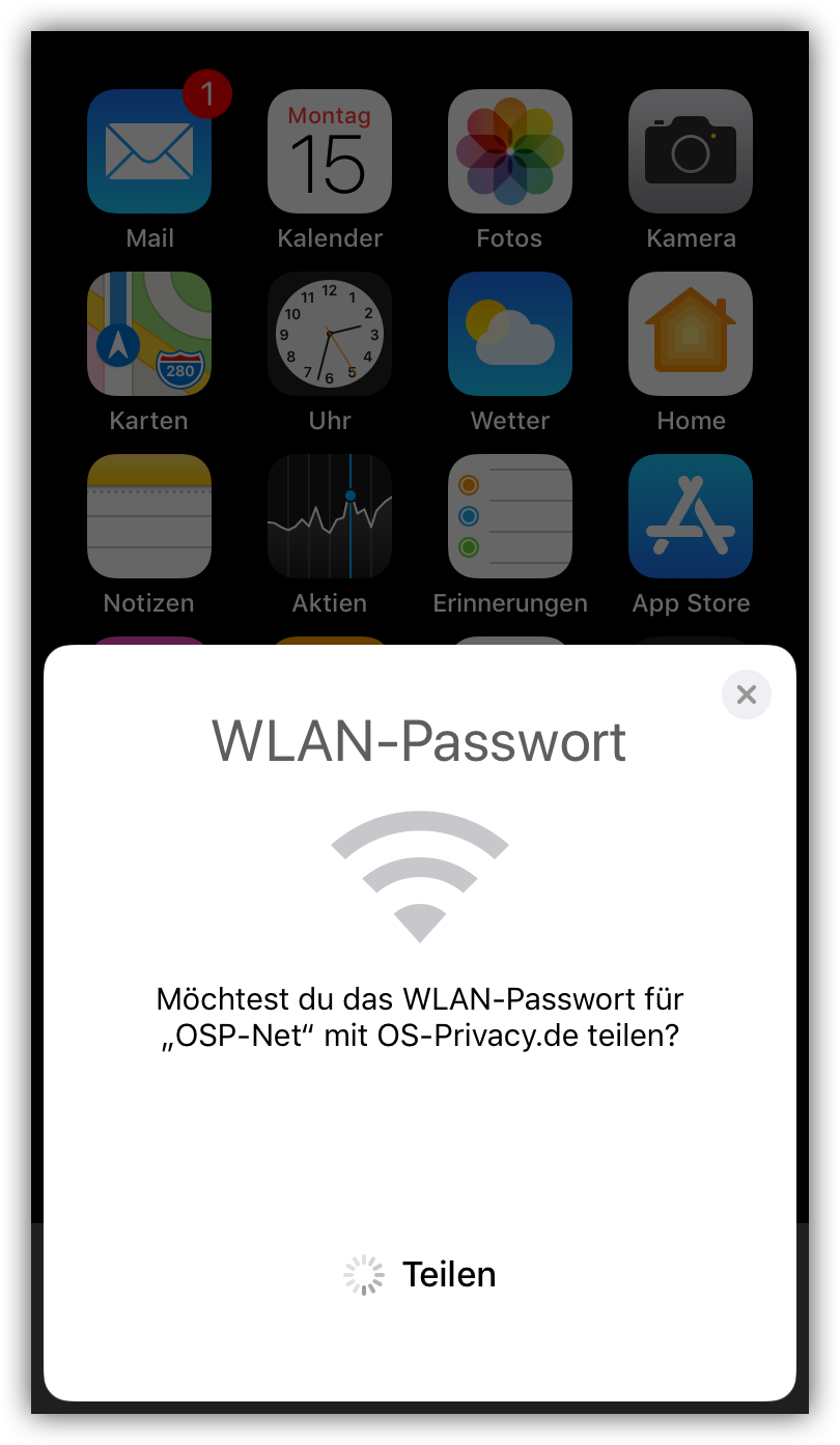 Mit iOS 11 und macOS High Sierra hat Apple eine weitere, sehr sinnvolle Funktion eingeführt – das Teilen Deines WLANs. Mit dieser Funktion musst Du Gästen Dein WLAN-Kennwort nicht mehr verraten und Deine Gäste müssen kein Kennwort (im Idealfall ein zufälliges Kennwort, das man sich nicht leicht merken kann) mehr mühsam eintippen – ein Klick genügt: