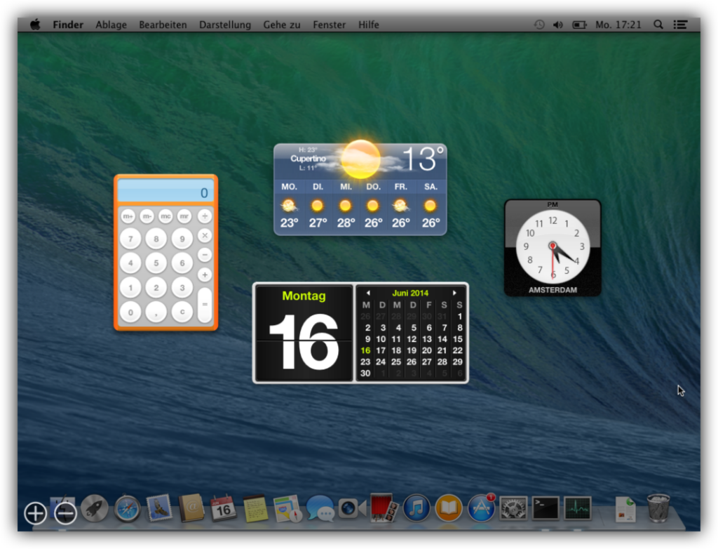 Mit OS X 10.4 (Tiger) hat Apple das Dashboard eingeführt. Auf dem Dashboard kannst Du Dir Mini-Programme, sogenannte Widgets anzeigen lassen. Eine kleine Auswahl an Widgets liefert Apple bereits mit der OS X-Installation mit – weitere kannst Du Dir z.B. über die Apple-Homepage besorgen. Solltest Du aber zu den Apple-Nutzern gehören, die diese Widgets nie nutzen, so kannst Du das Dashboard auch deaktivieren und die dafür verwendeten Ressourcen für Dein System freigeben. Unter OS X 10.10 (Yosemite) wirst Du das Dashboard nicht mehr benötigen, da Du die Miniprogramme dann über die neue Mitteilungszentrale nutzen kannst.