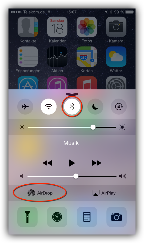 Auf Deinem iOS-Gerät kannst Du Bluetooth einfach über das Kontrollzentrum aktivieren – AirDrop muss nicht aktiviert sein: