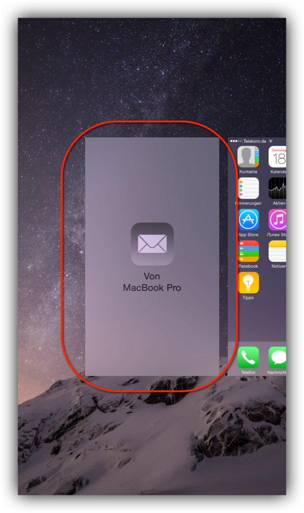 Du kannst nur aktive Apps und Programme übernehmen: beginnst Du auf Deinem Mac eine neue E-Mail, taucht sie als Handoff auf. Sobald Du das Fenster wechselst, verschwindet sie wieder. Genauso verhält es sich auf dem iPhone – solange Du Safari nutzt, wird Safari auf dem Mac als Handoff angezeigt – wechselst Du z.B. auf den Homebildschirm verschwindet sie wieder.